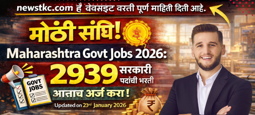 महाराष्ट्र शासनाकडून Maharashtra Govt Jobs 2026 अंतर्गत सरकारी नोकरीच्या शोधात असलेल्या उमेदवारांसाठी एक मोठी आणि आनंदाची बातमी समोर आली आहे. एकूण 2939 पदांची भरती जाहीर करण्यात आली असून इच्छुक आणि पात्र उमेदवारांना ऑनलाइन पद्धतीने अर्ज करता येणार आहे.
